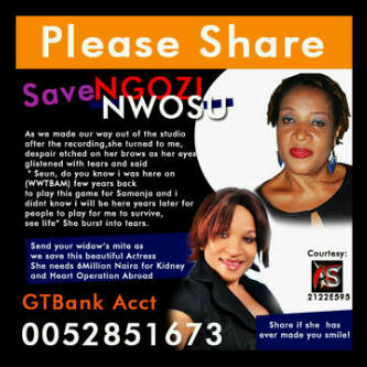 Veteran Nollywood actress Ngozi Nwosu needs your love at the moment. She has been diagnosed of a heart and kidney related ailment and needs about 6million naira for treatment.