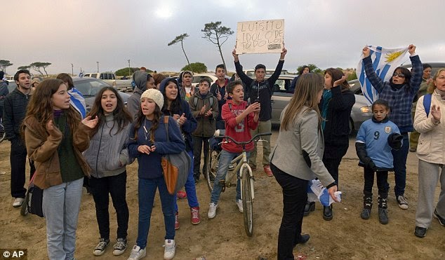 Uruguay’s President who joined them later said he wanted to give him a big hug. Suarez later arrived with his wife and two children at about 5am but only few of them were left as most went home when he didn’t arrive on time. How thoughtful of them all.