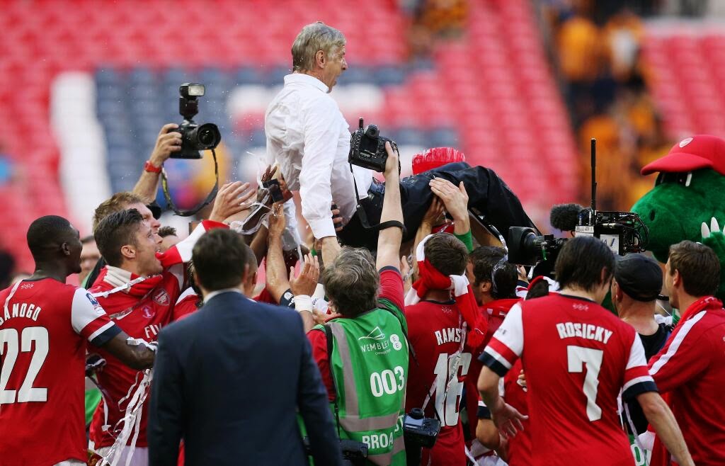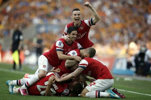 They came back from two goals down to win their 11th FA Cup trophy, everyone is helplessly in love with Arsenal at the moment. The English club thrashed out Hull City (3-2) to end their 9-year title drought. The players are over-joyed, fans ecstatic, the coach who has been a subject of ridicule for the past few years cannot contain his happiness. These are few celebration photos.