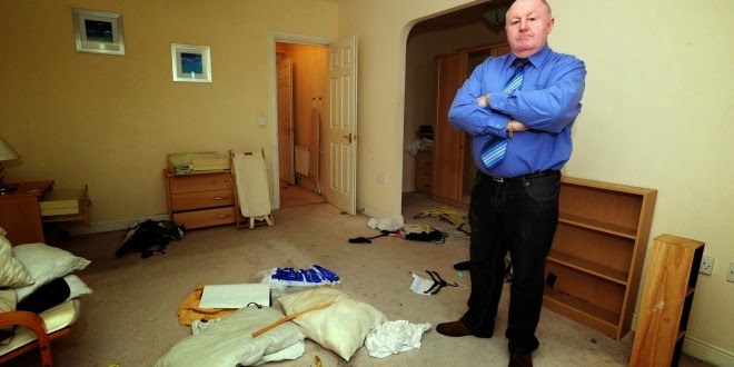 “The state it’s been left in is just unbelievable. There’s bond money of 1,500 pounds but by the look of it, it will need 5,000 pounds to put all the damage right and I will have to call in industrial cleaners. There are iron marks on the floor, as if left by ironing, and holes in the wall left by flat-screen TVs.