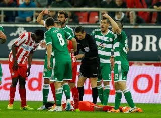 Nigerian/Olympiakos striker,Michael Olaitan while running off the ball lost consciousness and collapsed during his club’s game against Panathinaikos yesterday. The 21 year-old who featured for Olympiacos in the UEFA Champions League clash against Manchester United last week was attended to for five minutes before taken to the hospital for tests. The former Nigeria U-20 international’s condition is now stable.