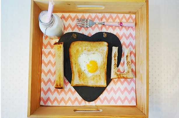 (2) Say it with breakfast- Take a careful look at the bread and egg picture above. That’s what I’m talking about. Few things are required if you’re considering this option; loaves of bread, eggs and cookie cutter. Frame the egg with a heart shape by using a heart shaped cutter. Dishes like rice can also fit in.