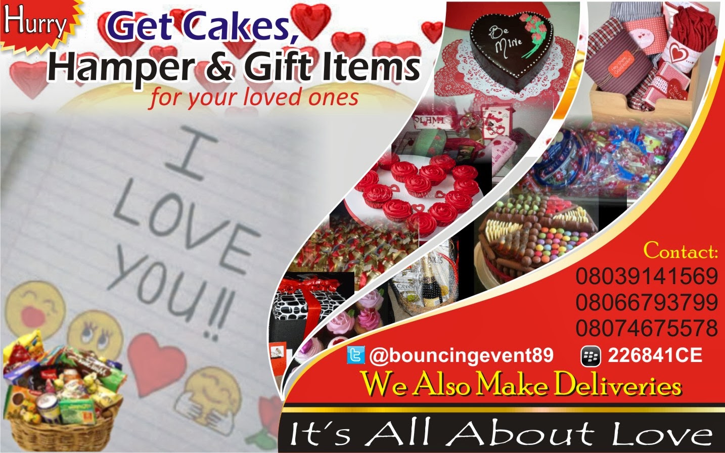 * A box of Cake, Red Wine, Wine glass, Pack of Chocolate, Foot scrub, Bath sponge and Bending Rollers, Wrapping, Gift bag- N10,000