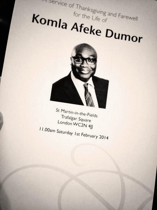 A memorial service in honour of Komla Dumor, the revered Ghanaian journalist who died on January 18, 2014 from heart attack in his London home was held by British Broadcasting Corporation (BBC) on saturday February 1, 2014. The event which took place at St Martin-in-the-Fields, Trafalgar Square, London, UK, was attended by family, friends and colleagues of the BBC presenter.