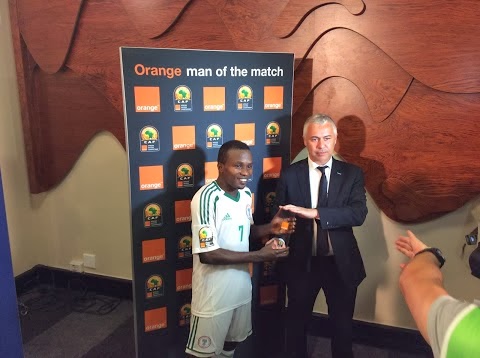 PHOTO: SUPER EAGLES' EJIKE UZOENYI RECEIVES MAN OF THE MATCH AWARD