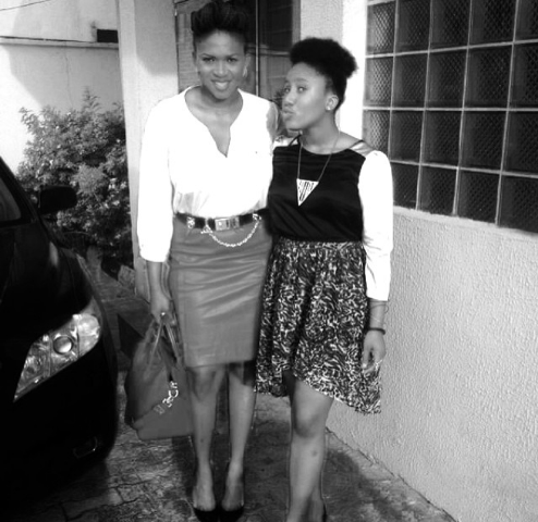 That sweet mother and daughter moment! 14 year-old Emerald is the splitting image of her pretty mum and we are not sure if she's following her footsteps (i.e singing). By the way I'm loving every bit of Waje's new look; the hair and figure. Hope she maintains it!