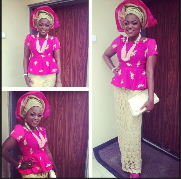 Nothing like seeing your dreams come true. I remember her tweet after attending a celebrity wedding few months ago, “Baby, we are next”. Tiwa Savage was all smiles and respledent on her big day (well, just what we expected, abi) and her traditional outfit? She looked flawless and simply ravishing in them. Her husband Tunji Balogun spruced up in a white Agbada also looked amazing. The strictly-by-invitation ceremony was held at The Ark Vicinity, located at Okunade Bluewater, Lekki, today November 23rd, 2013.