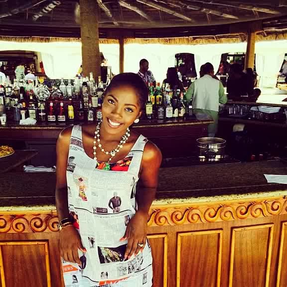 The pretty singer rocked this lovely matching newspaper print top and short during a performance in Mauritius. The dress was designed by Ituen Basi.