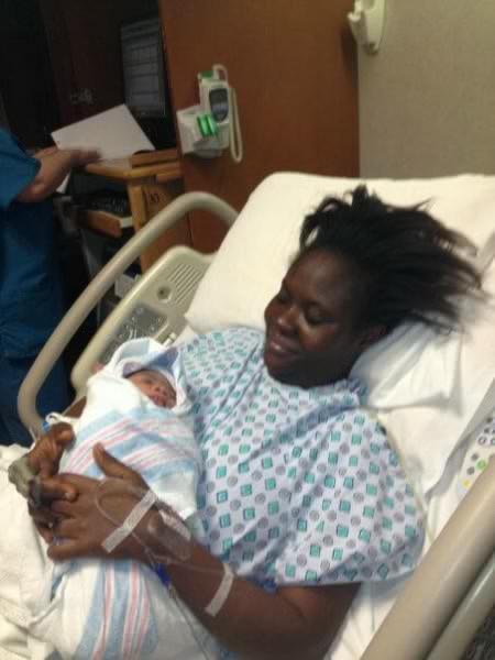 The Domino series star wrote this on her facebook page, "One last push' she said and all I could hear was a baby crying. She raised him up to me and said 'congratulations, it's a boy'. That moment I forgot the 24hr pain I had gone through, I forget about the aches in my legs, tears of joy filled my eyes and all I said was 'thank u Jesus'"