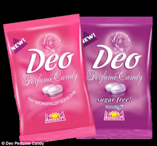 Made by an American company Deo Perfume, the perfume candy once licked releases rose scent through the pores of your skin. The body can't break down the chemicals in the sweet so they have to be discharged via the skin.