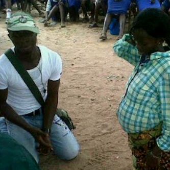 What makes this picture hilarious to me is the way the guy was made (I think) to kneel down in public. And the girl's (I told you not to do it) look is a little bit funny too. And why the gathering??? I'm sure this is a product of 'private lesson'. May God forgive our guys/boys/men.Of course this isn't new. They call such hit&run. In this guy's case, he was caught but only God knows if he would take off or be locked down.