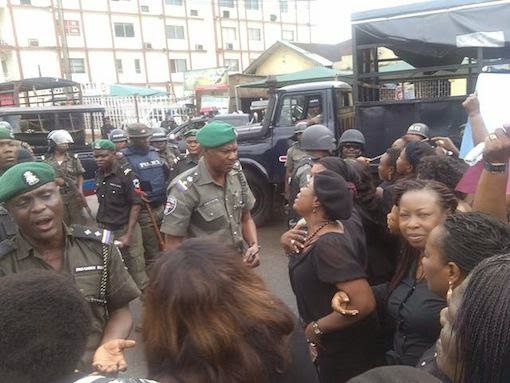 The Nigeria Police Force today fired teargas at APC women supporters in Rivers State who came out en masse to protest against the elections held on saturday.