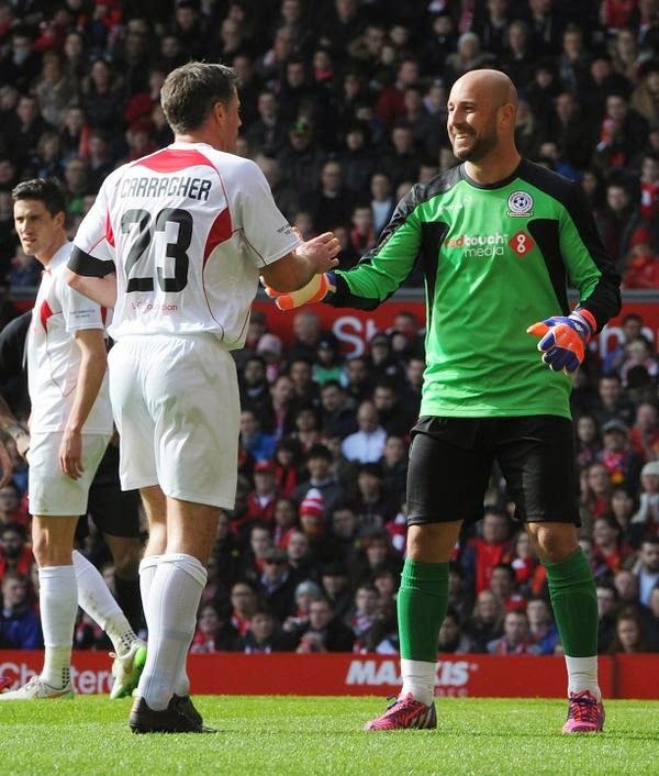 The game ended ended 2-2. Liverpool captain, Steven Gerrard scored two penalties for his side while Mario Balotelli and Chelsea’s Didier Drogba scored for Carragher’s side.
