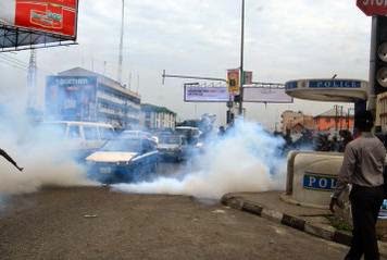 Photos: Police fire tear gas at APC women supporters in Rivers State