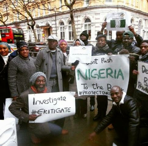 Some donned APC/Buhari branded tshirts, others carried placards with inscriptions on their placards r Buhari-Hope 2014, for a new Nigeria, Investigate #EkitiGate and many more.
