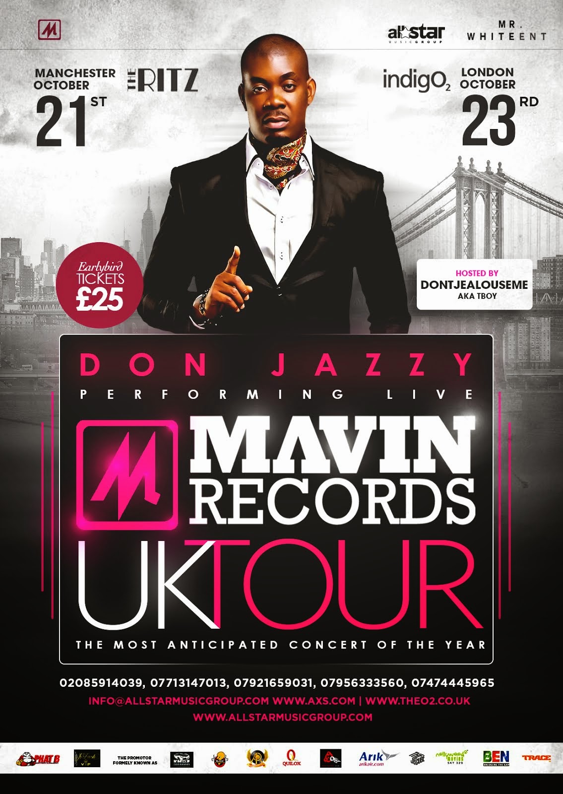 Arguably Africa’s number 1 record label, Don Jazzy-led music label, Mavin Records will be embarking on a two city tour of United Kingdom. The 7 man Mavin Records crew which consists of Chief Executive Officer Don Jazzy, Dr Sid, D’ Prince, Tiwa Savage, Korede Bello, Reekado Banks and Mavin Princess Di’ja will be performing live at Manchester Ritz 7pm on 21st of October and London Indigo2 on 23rd of October 2014.