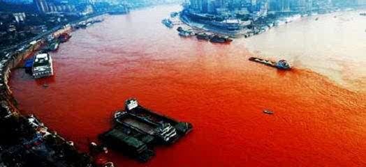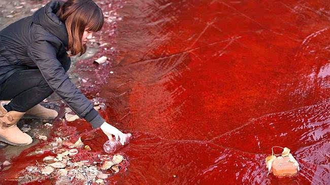 All I think of is Egypt and Exodus. So, a river mysteriously turned blood-red in Eastern China yesterday. Residents of Zhejiang first noticed the crimson colour in early Thursday and according to them, the river colour was normal around 5am but one hour later, it turned to red.
