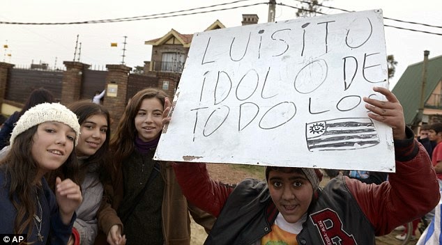 Uruguay’s President who joined them later said he wanted to give him a big hug. Suarez later arrived with his wife and two children at about 5am but only few of them were left as most went home when he didn’t arrive on time. How thoughtful of them all.