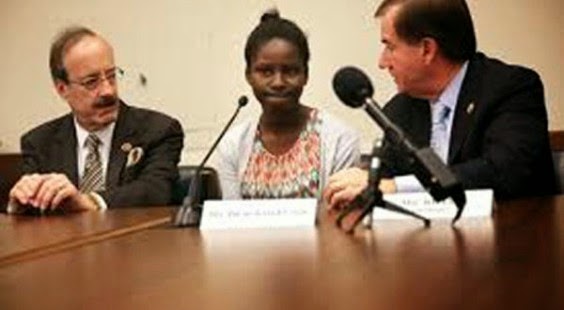 There’s nothing as traumatising as watching your loved ones die right in front of you. May God continue to help our nation. Deborah Peter, a Boko Haram survivor who now lives in Virginia, USA has lent her voice to the #BringBackOurGirls campaign. Speaking during a presentation organized by members of the US congress yesterday May 21st, 2014 , the 15 year-old held up a #BringBackMySisters” paper sign narrated her ordeal in the hands of the terrorist sect, Boko Haram.
