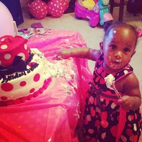 Wow! How time really flies! I remember seeing his tweet about the arrival of the baby exactly a year ago and now the charming lil lady is 1 already. Singer, Lanre Dabiri, popularly called Eldee and his wife, Dolapo treated their second daughter, Toke to a mini but colourful birthday gig yesterday, March 15th, 2014. She really had a field day with the cake. Her elder sister, Temilayo also stole the show. #sistersrock.