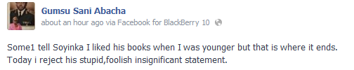 Abacha family members don’t play at all o. Anyways, the season of open letters which ended two months ago has started again. The battle-line now drawn between Nobel laureate, Prof Wole Soyinka and late Military dictator’s family. Less than 24 hours after the writer was called out by Abacha’s daughter Gumsu Sani Abacha’s facebook page, another family member, Sadiq Abacha has penned a long open-letter to him. (It reads like an history lecture note tho’).