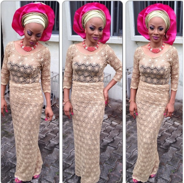 Still on Tiwa Savage and Tunji ‘Tee Billz’s superlative wedding which is still going on in Lekki, Lagos. Love these ladies’ outfit, so I’m asking, who rocked her Aso-ebi best? Is it Linda Ikeji, Toke Makinwa, Funke Akindele or Agbani Darego? By the way, Agbani Darego looks cute in Aso-Ebi. Let’s hear from you.