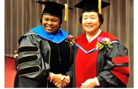 In recognition of her immense contribution and commitment to many humanitarian projects, Hansei University, South Korea has honoured the First Lady of Nigeria, Dame Patience Jonathan with a doctorate degree. She now has 4 doctorate degrees in her cabinet.