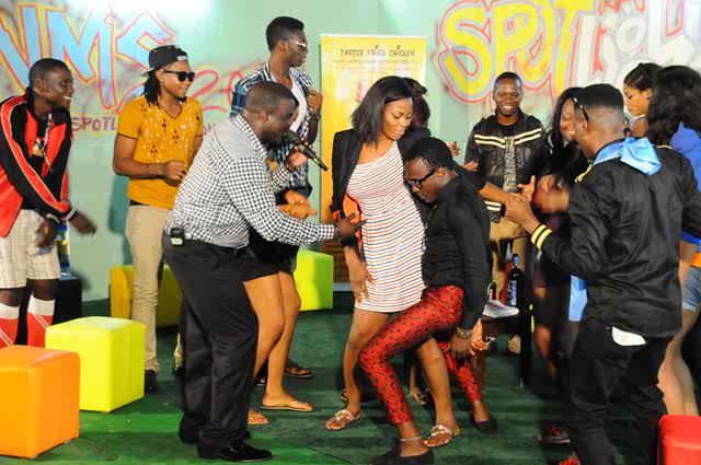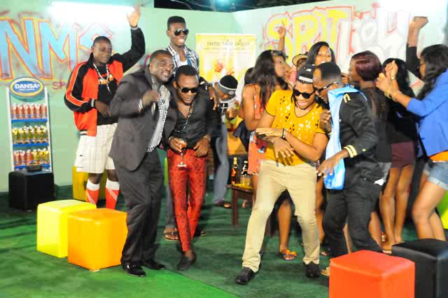 The Paramount King of Fuji Music, Abass Akande Obesere and Afro hip hop star, W4, stunned and surprised the 2012 Next Movie Star housemates when they visited the NMS House as special guests at the first Thank God It's Friday night. This is a night usually reserved for the housemates to unwind and let their hairs down in an atmosphere of unbridled fun and revelry. And over the years, the producers have ensured they invite rave musicians to party with the housemates during the TGIF. Dressed in a well-cut blazer atop a checkered shirt and black pant, the Fuji music star was ushered into the warm embrace of the housemates who shrieked and screamed on sighting him. The reception was no less overwhelming for W4 whose real name is Adewale Adepoju. Settling down to chit-chat with the excited and enthralled housemates, Obesere said, "I have followed the success story of the Next Movie Star since inception and I am proud at how far it has come. Some of you may not know but I am also an actor and when I see young people wanting to go into the profession, I advise them to endeavour to get the requisite training and education. I'm happy that these are what the producers of the NMS are offering young Nigerians. Please, grab all that you can from them and know that only one person can win the ultimate prize. Your own victory is in what you leave here with in terms of the training and experience, which would set you apart when you enter into the (entertainment) industry fully." On his part, W4, who has been enjoying increasing mainstream acceptance since the release of his hit single, Kontrol, also advised the housemates to remain focused because the entertainment industry is not for the indolent. "It's a tough world out there but you are lucky because you would be coming in with a lot of skills and experience which your being in the Next Movie Star offers you. Make use of the opportunity and take 'Kontrol'."Thereafter, Obesere removed his blazer and dug into his rich repertoire, belting out melodious and dance-worthy Fuji songs, songs that have earmarked for him a prime place in the Hall of Fame of Nigeria's music icons. Even without instrumentals, the housemates who did not understand the Yoruba language could not help but dance unabashedly to the former lewd lyricist's music. W4 did not allow the more experienced Obesere to outshine him as he also did two songs from his burgeoning repertory. On behalf of the housemates, Ojikemba Jude, thanked the guest artistes for their presence, commending Obesere especially for how he has been able to struggle through a deprived childhood to be a successful music star.