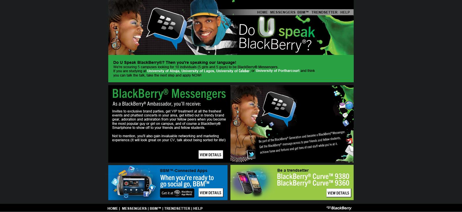 According to an official statement from Blackberry "We are currently searching for young people who speak 'Blackberry'; basically, young, well spoken, driven individuals, who can effectively represent the brand in their various universities and environs. It would be an amazing experience as the Ambassadors will have a lot of fun representing a global brand, as well as gain invaluable networking and marketing experience while spreading the word about the world's fastest growing smart phone on their campuses."