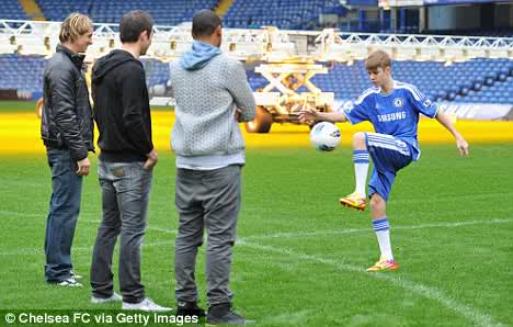 Sure if there’s any other vocation 17 year-old music star, Justin Bieber would have ventured in asides music, it would certainly be football. Who knows the ‘Baby Baby’ crooner might get signed up by one the football managers one day. The 17 year-old who was spotted sometimes April this year in Barcelona, Spain where he met and trained with some of the footballers visited Chelsea football club’s base, stamford Bridge and again showed off some football skills. Later he was ushered into the dressing room where he met the likes of Frank Lampard and Fernando Torres.