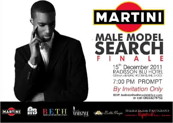 BETH Model Management Africa in conjunction with Martini is staging the Martini Male Model Search Finale at Radisson Blu Hotel, Ozumba Mbadiwe, Lagos on thursday 15th December 2011.
