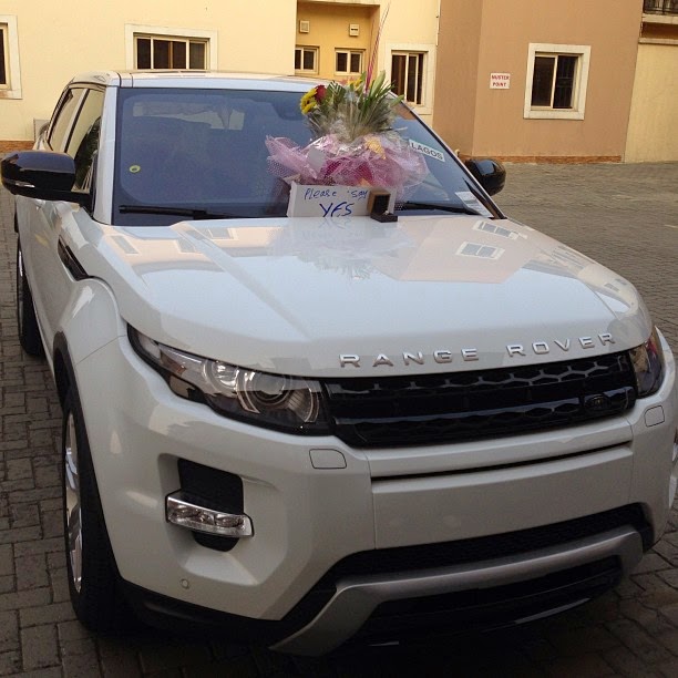 The proposal was accompanied by a brand new white range rover, a lovely bouquet, a ring and a Pls say Yes tag. And of course she said YES. Peter shared the news on his instagram page with the caption, "She said YES….:))"
