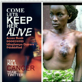 One of the breasts is condemned already and it has moved to the 2nd and her neck. The only source of support she needs is our financial contribution in any form, she needs N6million.