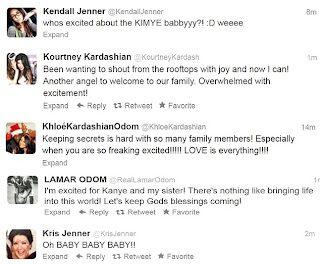 Few hours later, her family poured out congratulatory messages via twitter. Grandma Kris Jenner who's expecting her third grandchild was beside herself with joy, "I'm a happy girl !!!!!!!!! Wowza!'