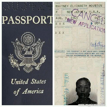 The late queen of pop, Whitney Houston's passport bearing her photograph, stamps from Japan, Jamaica, St. Maarten, the Dominican Republic, Curacao and Jamaica should also rake in lots of money, at least $6,000.