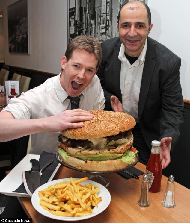 According to daily mail, it is a challenge for even the hungriest customer, packing seven pounds of beef, nine rashers of bacon and nine slices of cheese into a 12-inch bun.