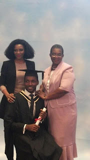 Her mum (on low-cut) together with family members celebrate with her handsome brother, Stephen Nnaji who graduated from the University of London on March 13.