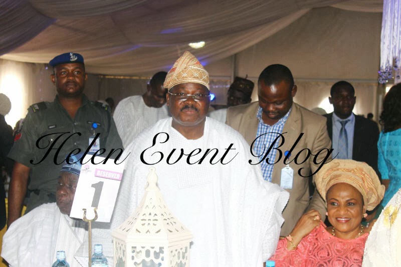 The white wedding took place at the Redeemed Christian Church of God, a grand reception at Yard 158, Ikeja followed after. Anchored by self-acclaimed Comedian of the Federal Republic (CFR), Gbenga Adeyinka; top political juggernauts at the event include former Governor of Ogun state and All Progressives Congress (APC) chieftain, Chief Olusegun Osoba who was also the chairman of the occasion, incumbent Governor of Oyo State, Governor Ajimobi and wife, Florence Ajimobi, Otunba Adebayo, Senator Omoworare to mention a few.
