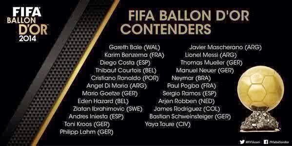 The 2014 Ballon D’Or award shortlist features some of your favourite players who were and are still in sparkling forms last and this season. The 23-men list was unveiled by World football’s governing body today and the winner will be announced at Zurich on January 12.