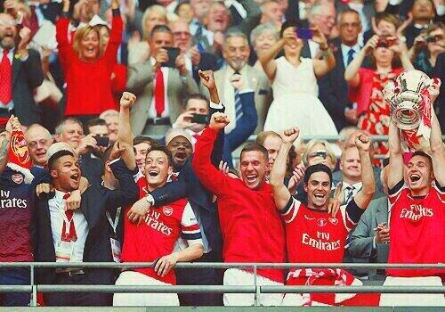 They came back from two goals down to win their 11th FA Cup trophy, everyone is helplessly in love with Arsenal at the moment. The English club thrashed out Hull City (3-2) to end their 9-year title drought. The players are over-joyed, fans ecstatic, the coach who has been a subject of ridicule for the past few years cannot contain his happiness. These are few celebration photos.