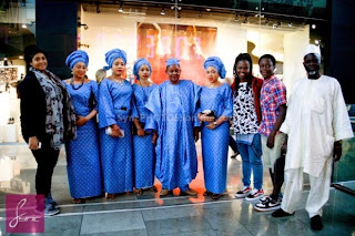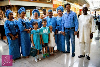 The Alaafin of Oyo, Oba Lamidi Olayiwola Adeyemi and his four wives were the cynosure of all eyes as they stormed the Westfield Mall in London recently. Garbed in Royal blue laces, the pretty wives and their husband took pictures with shoppers/passersby as they walked through the mall. Recall that he treated his wives and friends to a lavish 76th birthday ceremony in the UK few days ago.