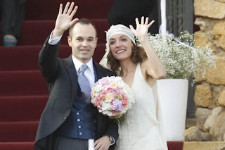 Barcelona midfielder and the Euro 2012 player of the tournament Andres Iniesta tied the knot with his long term girlfriend, and mother of his daughter Anna Ortiz at Tamarit castle, Spain yesterday, 8th July 2012.