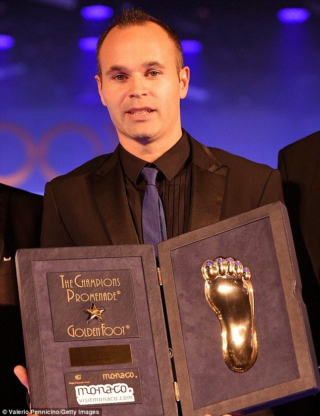The award is handed over to players aged 28 or over and it is determined by an online poll. Then a panel of journalists select 10 finalists based on personality and achievements. At the 11th edition of the ceremony which took place in Monaco yesterday, Iniesta had a mould of his footprints taken on stage.
