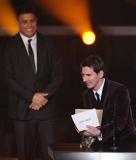 The 2011 FIFA Ballon d'Or awards held at Zurich, Switzerland saw humble and talented Barcelona forward, Lionel Messi win the FIFA Ballon d'Or for the third consecutive time, polling 47.88 of the votes, ahead of Real Madrid's Cristiano Ronaldo (21.6)%) and Barcelona's Xavi (9.23%).