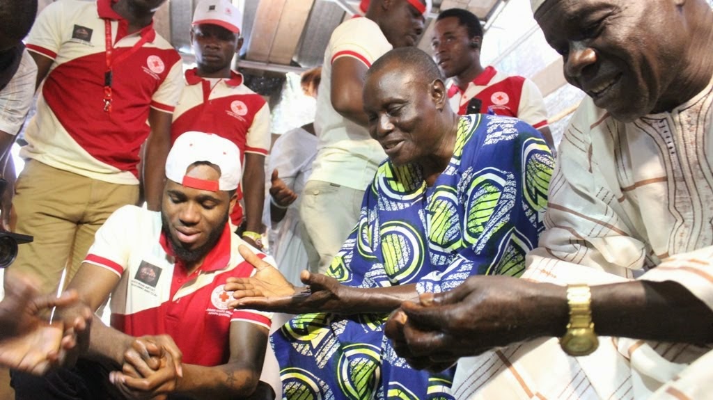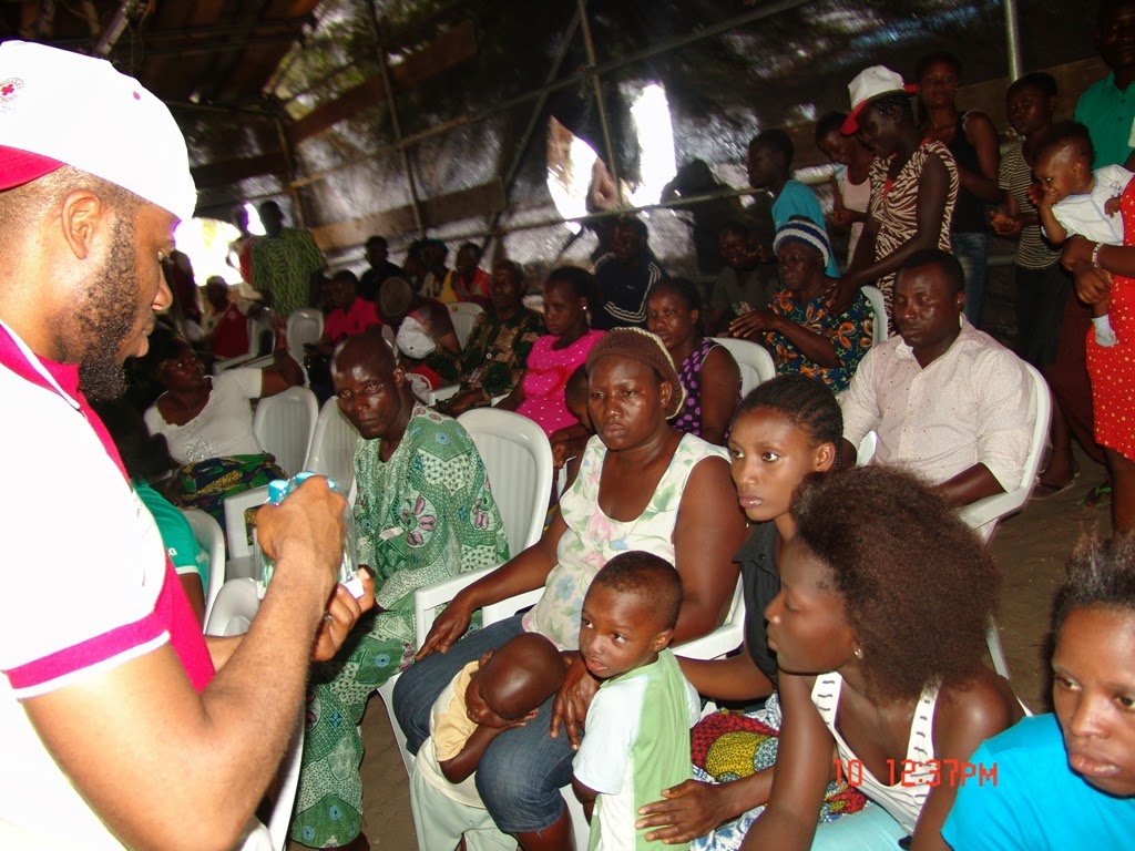 Singers, Lamboginny and Clay recently paid a visit to the rural community of Nanti popularly referred to as the Snake Island in Lagos to enlighten residents on the deadly Ebola Virus Disease. The residents trooped out with their Baale to receive the music stars who were on hand with the Nigerian Red cross.