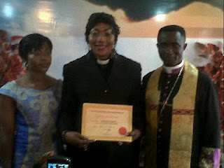 The single mother was ordained as an Evangelist at Fresh Oil Ministry on February 5, 2012. Present at the occassion was her colleagues Clarion Chukwurah, Susan Peters, her son Raymond to mention a few.