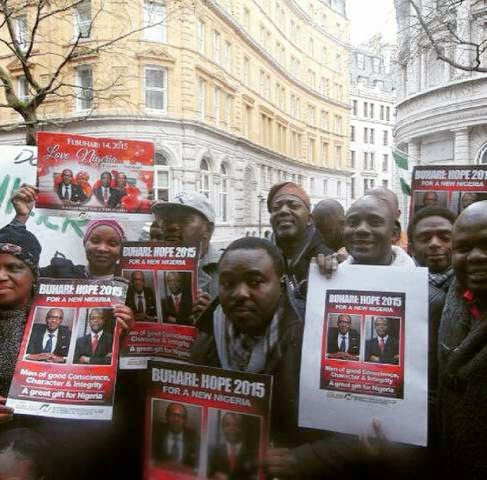 London-based Nigerians took to the streets to show support/solidarity for All Progressive Congress Party Presidential candidate, General Muhammadu Buhari and his running mate Prof. Yemi Osinbajo yesterday, February 14,2015.
