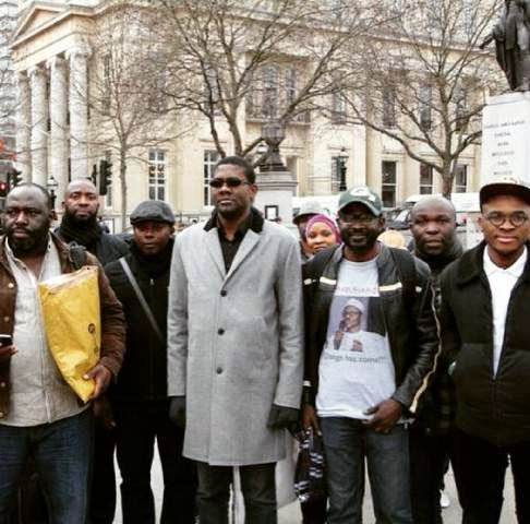 A group of Nigerians in London are currently staging a protest against the presidential candidate of the All Progressives Congress, General Muhammadu Buhari who will speak at Chatham House, United Kingdom today.
