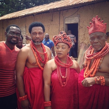 Spotted on the set of ace music video director, DJ Tee’s new film are Olu Jacobs, Bimbo Akintola and Rykardo Agbor. They looks do different in the attire. Rita Dominic and Joseph Benjamin also donned the Benin attire few days ago, not sure if it’s the same flick. The movie titled ‘The Antique’ is themed on the Benin Kingdom.