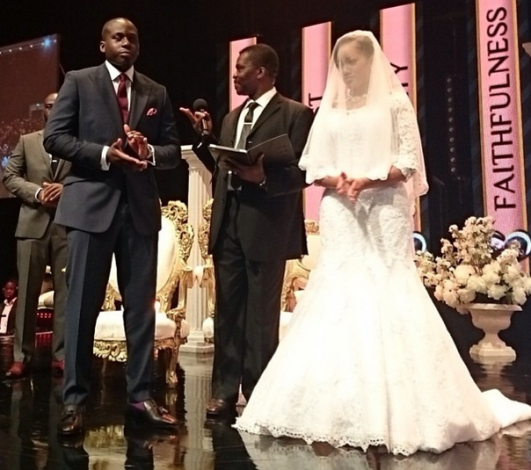 The ceremony was held at the Silver Spoon Cuisine in Chatham. General Overseer of the Redeemed Christian Church of God, Pastor E.A Adeboye was there to bless the union.